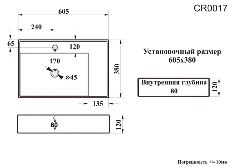 Раковина накладная Ceruttispa CR0017 60см белый купить