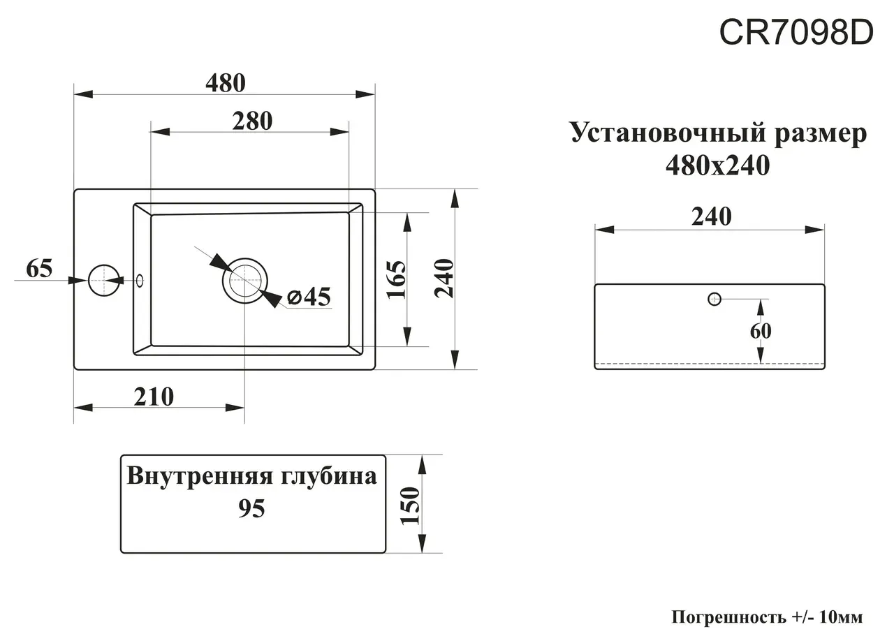 Раковина накладная Ceruttispa CR7098D 48см белый купить