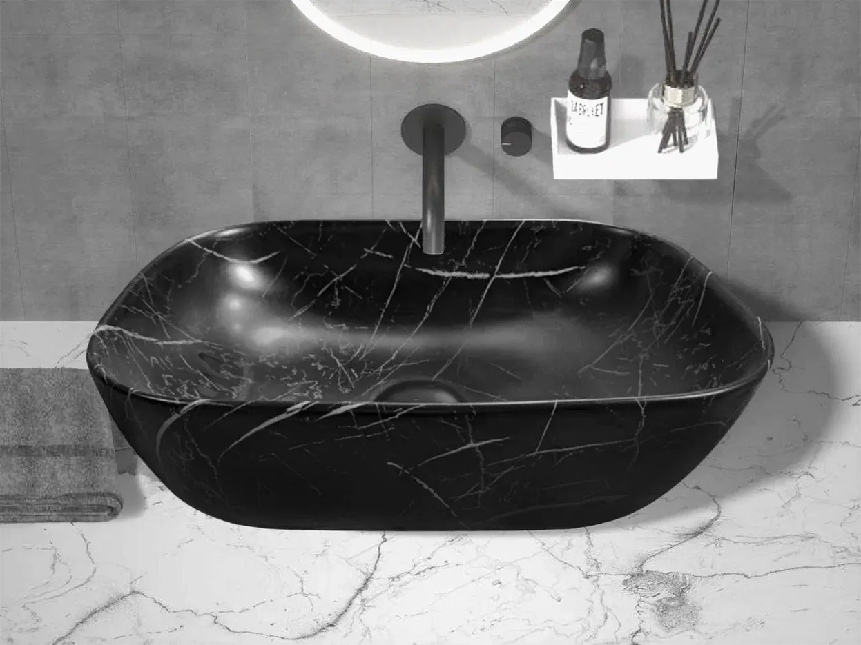 Раковина накладная Ceruttispa CR8215MMB 45см чёрный мрамор матовый купить