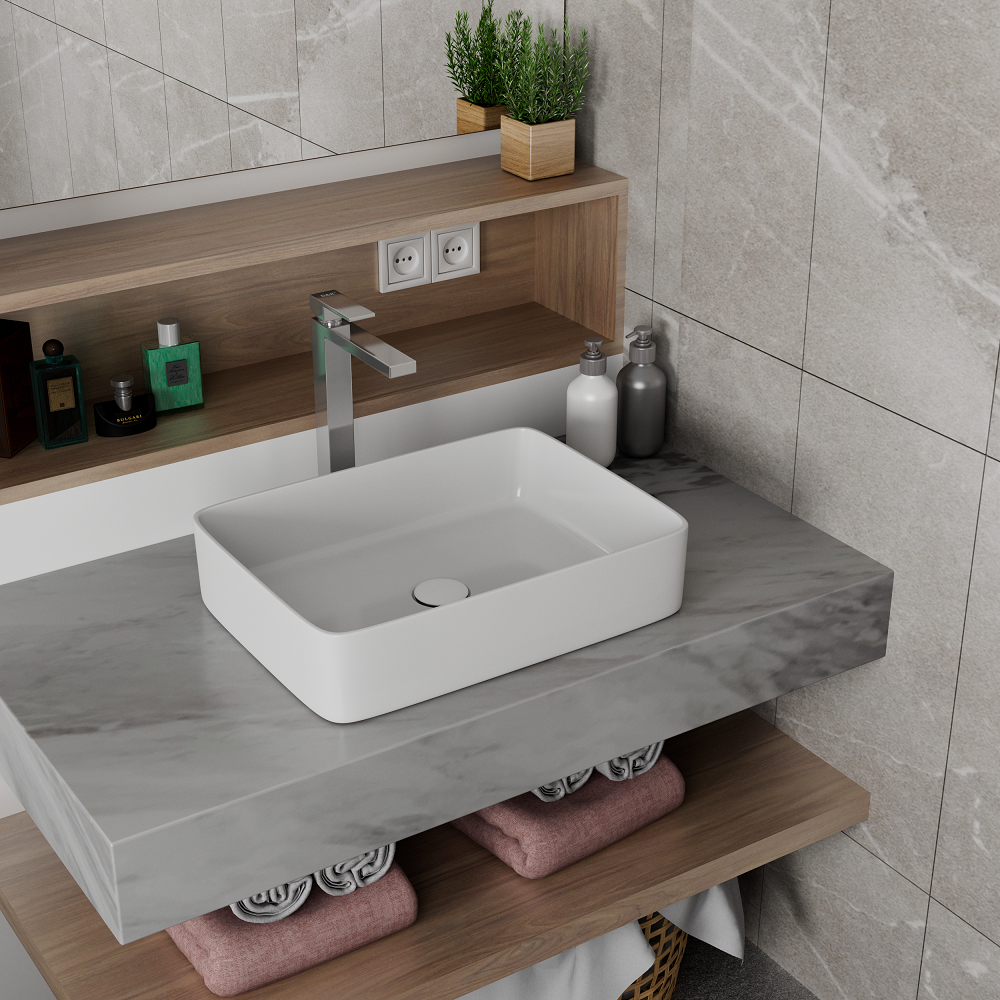 Накладные раковины торговой марки DQ производятся из керамического фарфора. Фарфор, как и фаянс, изготавливается на основе белой глины.