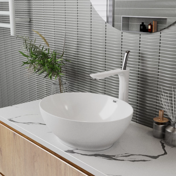 Накладные раковины торговой марки DQ производятся из керамического фарфора. Фарфор, как и фаянс, изготавливается на основе белой глины.
