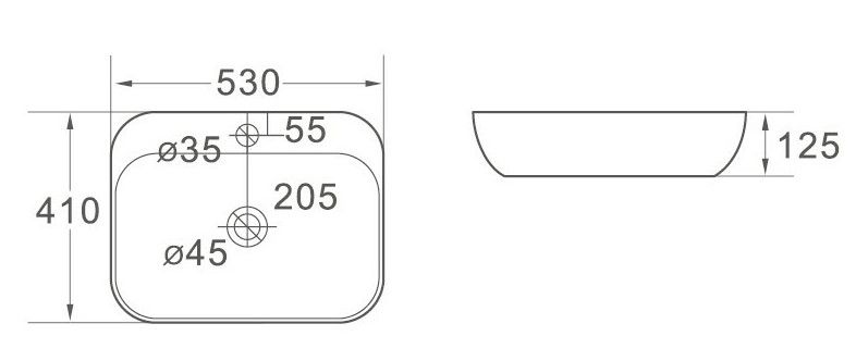 Раковина SantiLine, накладная, 53 х 41 см, цвет белый, SL-1024Раковина керамическая 53 х 41 х 12.5 см,накладная без перелива, дополнит современные интерьеры ванных комнат в различных цветовых гаммах.