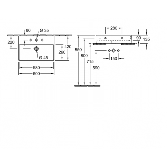 Раковина Villeroy Boch Memento 2.0 4A226LR1 600 x 420 mm Альпийский белый
