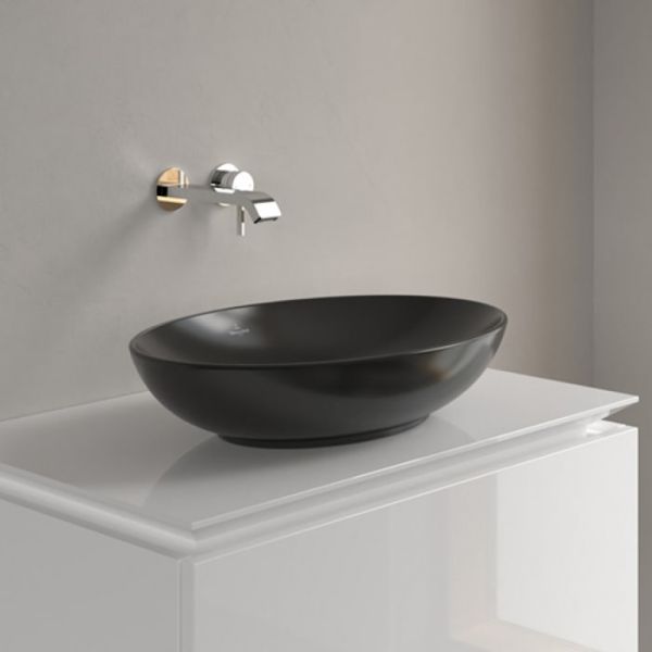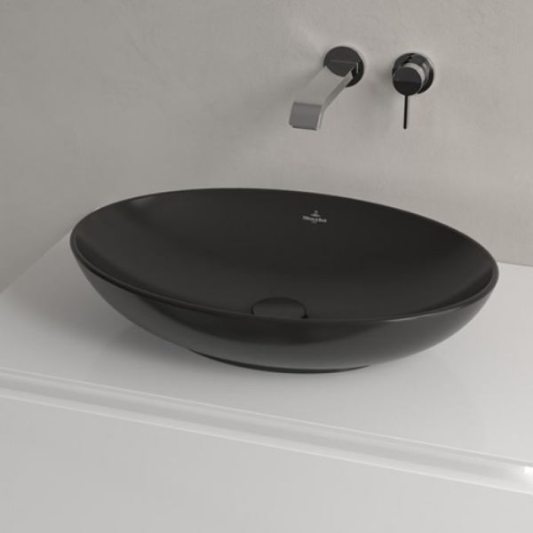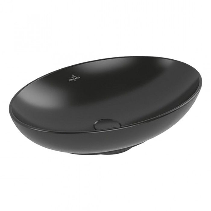 Раковина Villeroy Boch для установки на столешницу, 560 x 380 x 120 mm, Pure Black CeramicPlus, без перелива черный