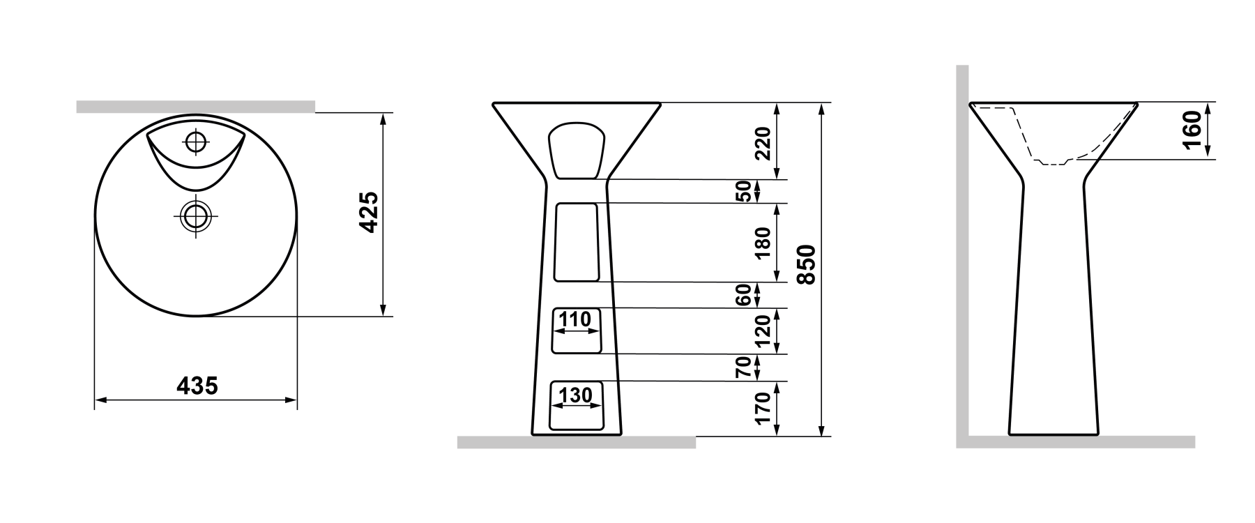 Цвет белый. Раковина с отверстием под смеситель; с отверстием перелива.