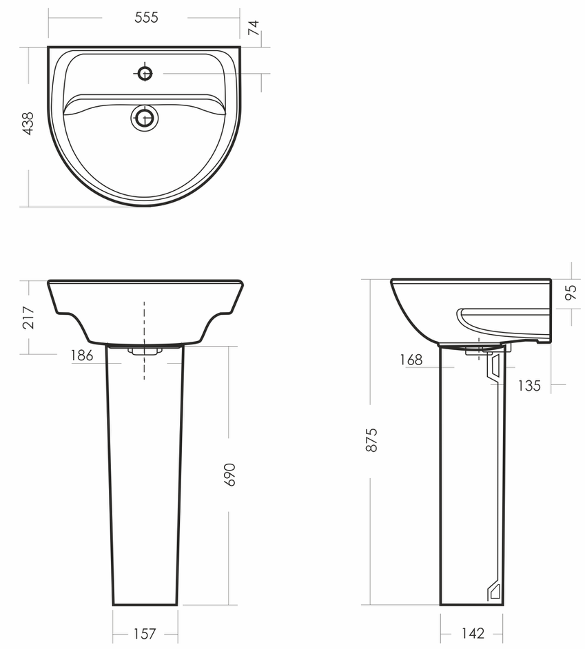 Лаконичный пьедестальный умывальник ЭТАЛОН имеет базовый размер, полочку и большую глубокую чашу
