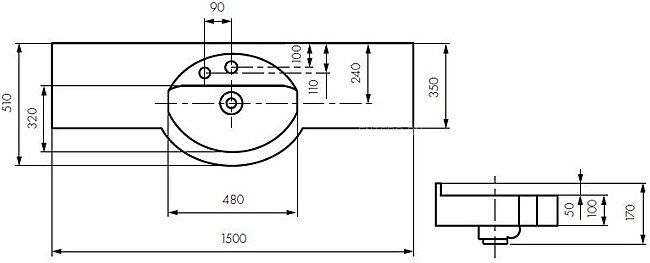 Раковина подвесная Акватон Отель 150см белый 1A70133NOT010