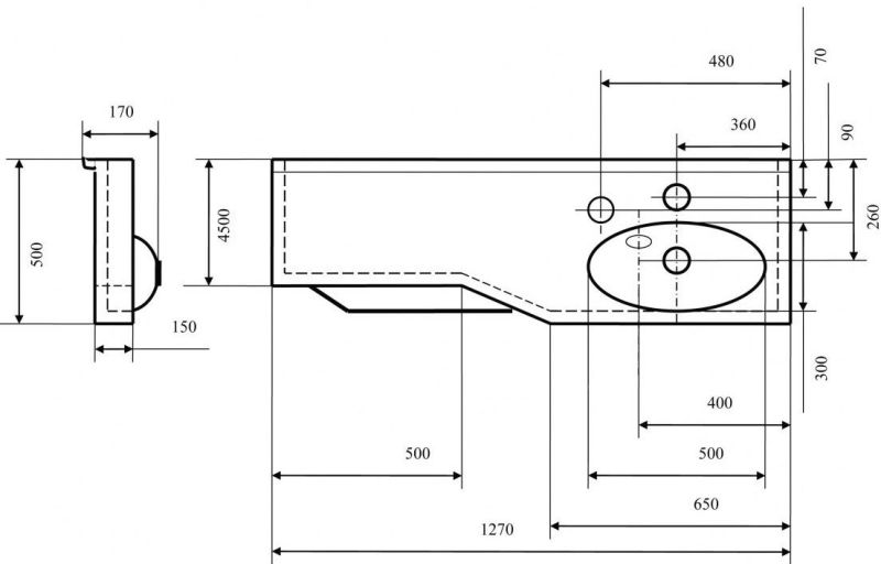 Раковина подвесная Акватон Отель правая 130см белый 1A70123WOT01R