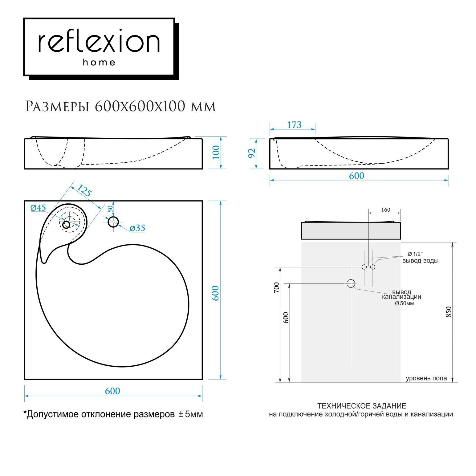 Раковина Reflexion Beta RF6060BT белая 60x60 купить