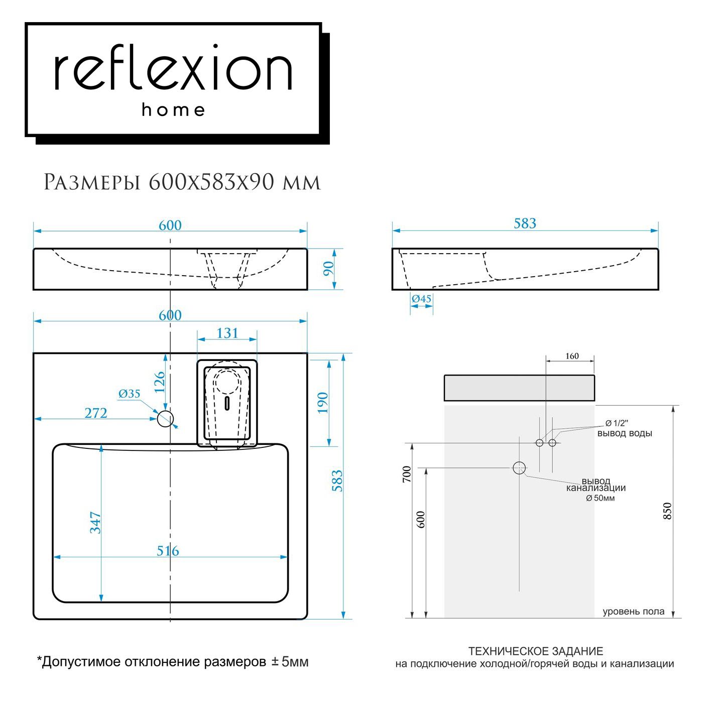 Раковина Reflexion Kappa RX6060KA белая 60x60