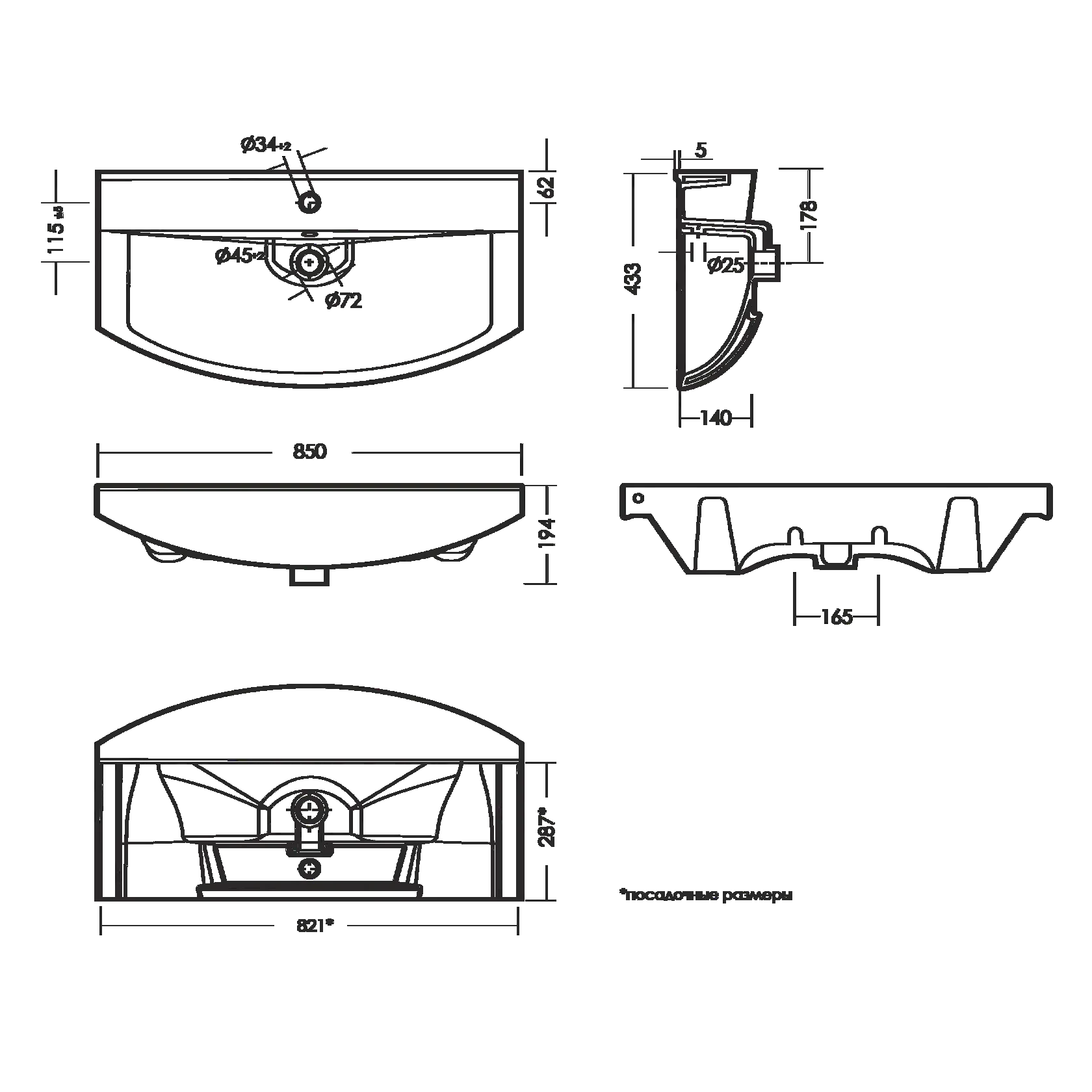 Раковина Sanita Luxe Best WB.FN/Best/85-C/WHT.G/S1 85 см