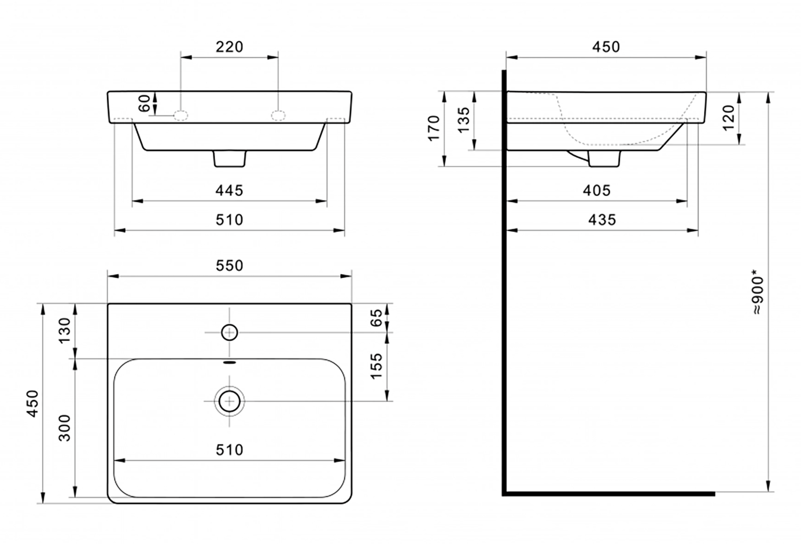 Тип: раковиныПо форме: прямоугольныеРазмер, мм (ШxГxВ): 550x450x170Размер в упаковке, мм (ШxГxВ): 580x480x200Цвет: белыйВес с упаковкой, кг: 14.3По монтажу: мебельнаяМатериал: керамика