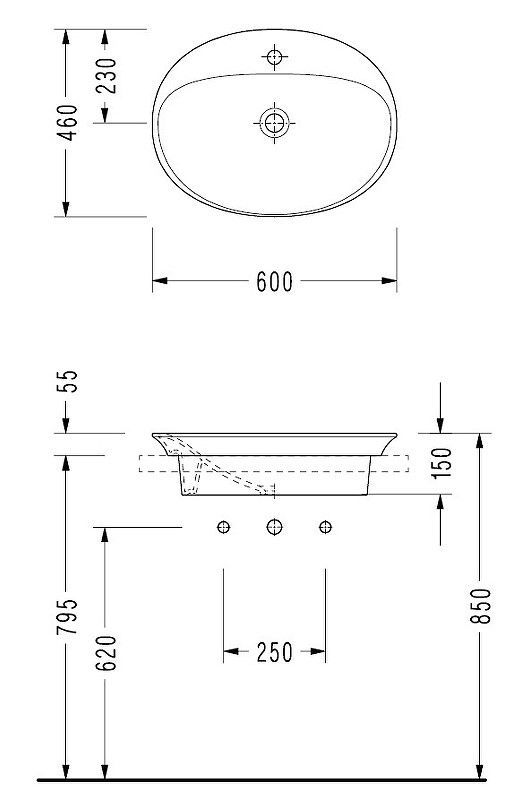 Раковина Serel Hera для установки в столешницу 60 х 46 см, белый, HR34TXS110HОсновные характеристики: