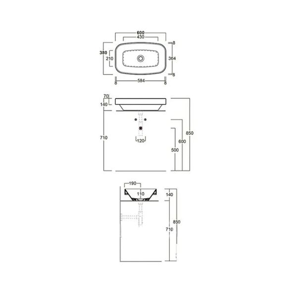 Размеры: 600 х 380 х 70/140 мм