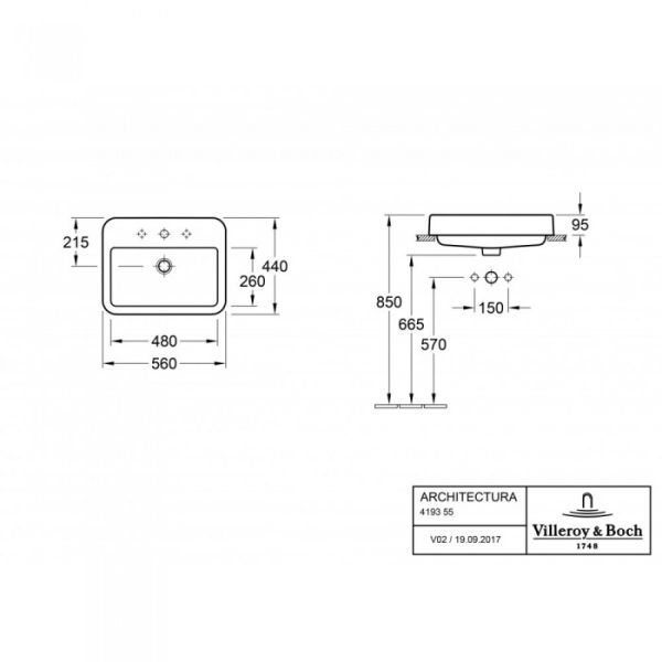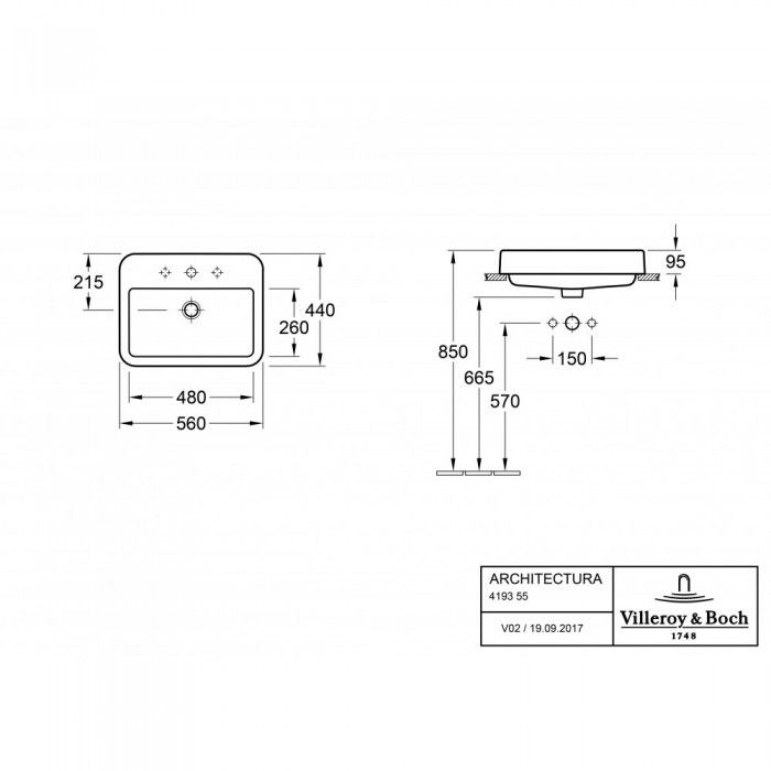Раковина встраиваемая Villeroy Boch Architectura 43 x 55 см Альпийский белый купить