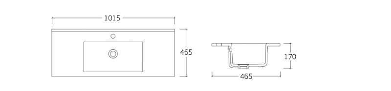 1015х465х170Отверстия под смеситель: