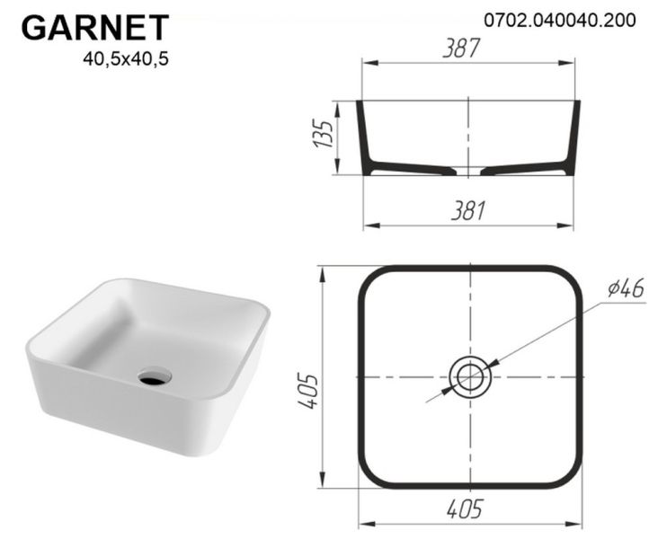 Раковина Whitecross Garnet 0702.040040.200 40см белый матовый купить