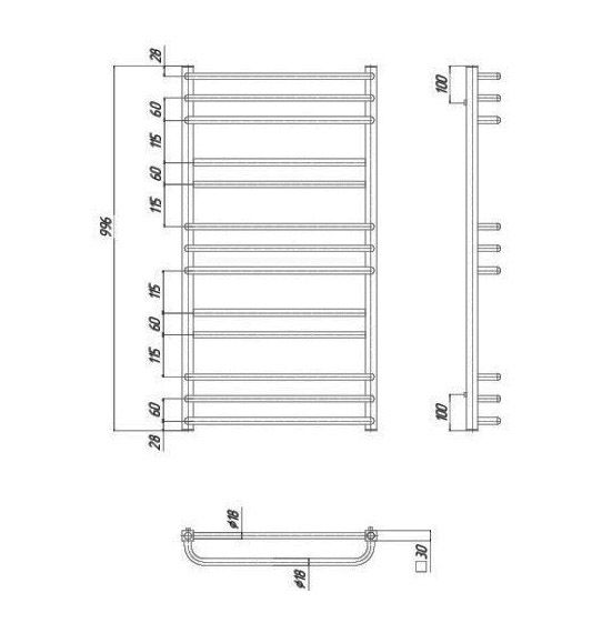 Ширина, мм: 530Высота, мм: 1000Материал: СтальЦвет: ХромФорма: ЛесенкаТип: Водяной