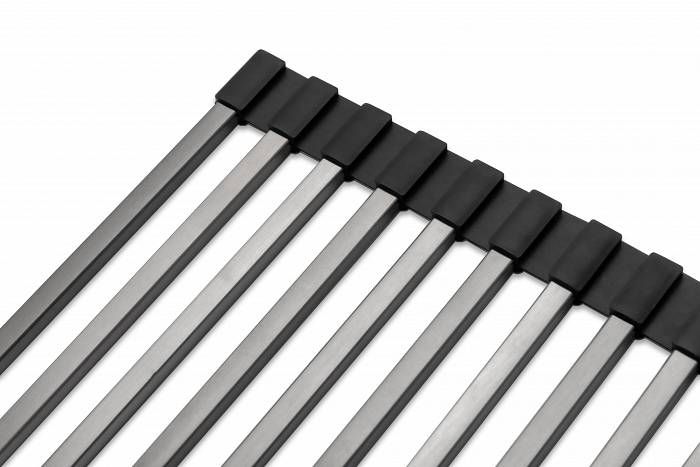 Ролл-мат для кухонных моек, артикул R375-GM330*375 ммРолл-мат STEP R375 от Paulmark — это универсальный и многофункциональный ролл-мат 330*375 мм из нержавеющей стали. Он может быть использован в качестве подставки для горячей посуды, сушилки для овощей и фруктов или коврика для разморозки продуктов. Благодаря двусторонним силиконовым наконечникам, ролл-мат защищает поверхность и может быть размещен на столешнице, крыле мойки или в специальных направляющих чаши кухонной мойки.