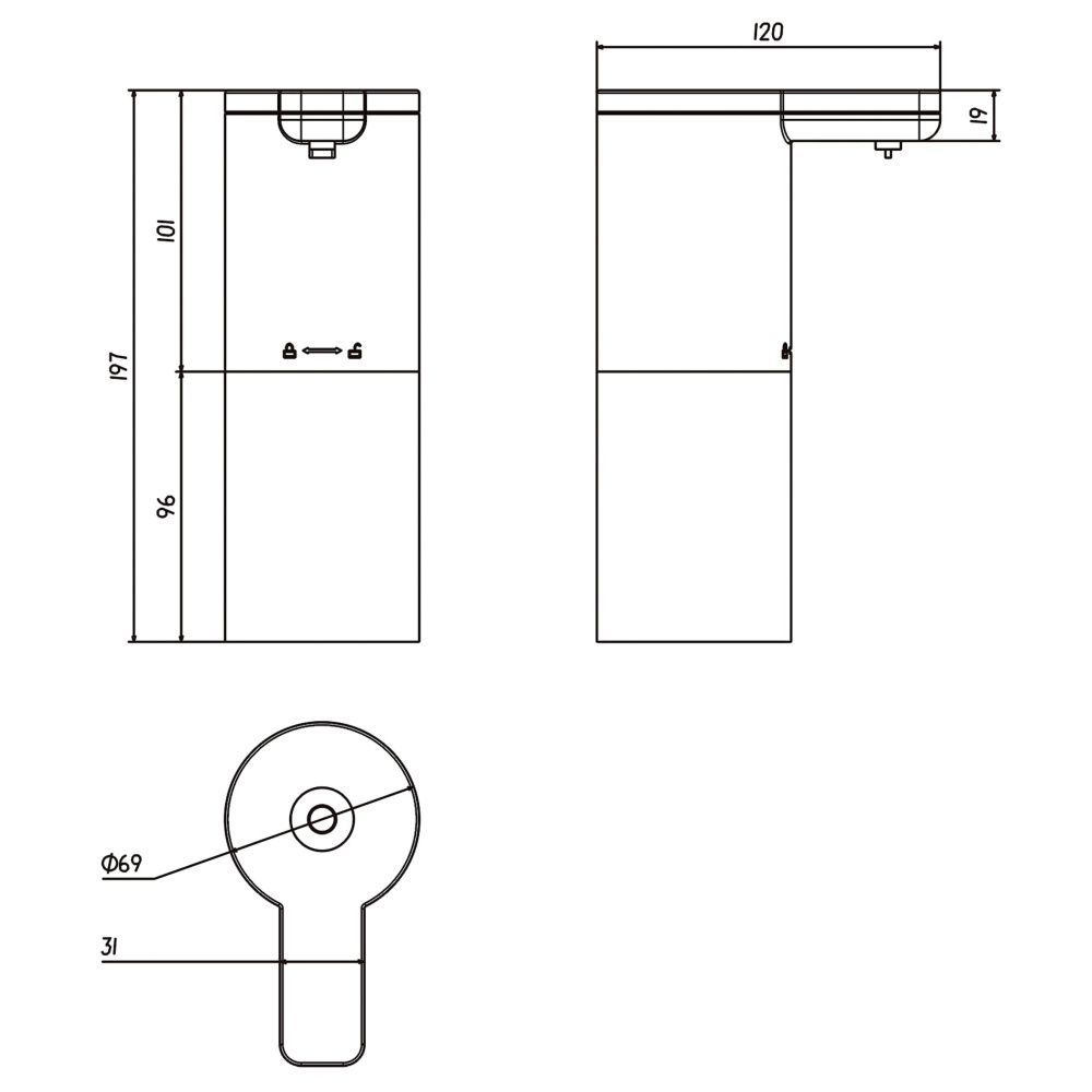 Сенсорный дозатор для пенного мыла.Устройство работает с жидким мылом, разбавленным водой в соотношении 1:3.Работа от батареек типа АА, 4 шт.Объем: 280 мл.