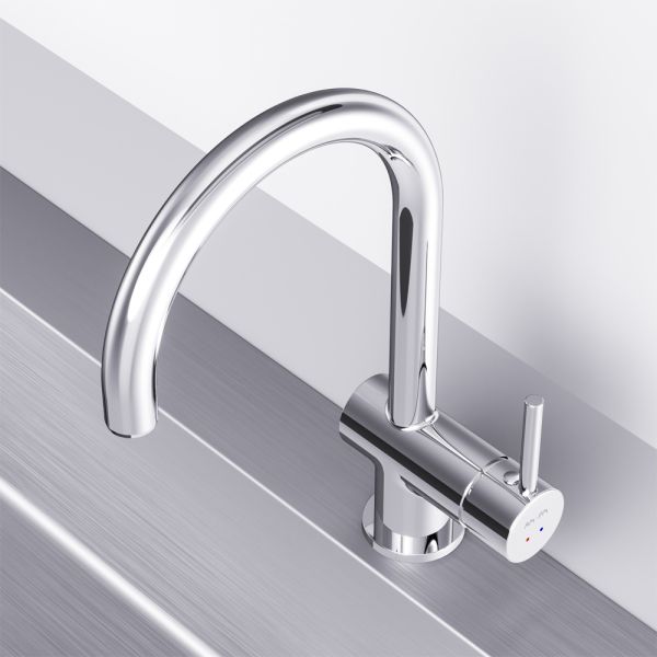Максимальный комфорт: плавное вращение поворотного излива в любом направлении обеспечивает непревзойденное удовольствие от использования и удобство в работе на кухне.