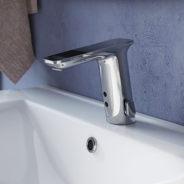 Смеситель с сенсорным управлением из коллекции Pulse эстетически привлекателен и максимально функционален: он исключает непосредственный контакт рук с его корпусом, что дает больше возможностей для эффективного соблюдения гигиены и сохранения здоровья всех членов семьи. Легкий наклон корпуса, тонкие формы и отсутствие лишних стыков формируют по-настоящему современный и стильный продукт, который будет хорошо смотреться в интерьере любой современной ванной и наполнять ее пространство удивительным комфортом. Аккуратная рукоятка на корпусе бесконтактного смесителя позволяет единожды быстро и точно подобрать комфортную температуру, а оптимальное время подачи воды (1 минута) помогает избежать необоснованного перерасхода воды.