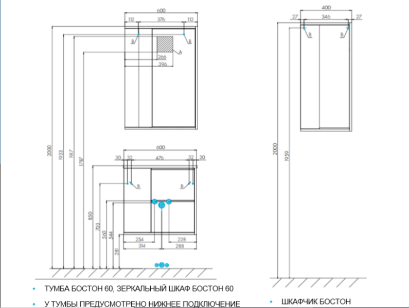 Шкаф Акватон Бостон белый/дуб эврика 1A239903BN010