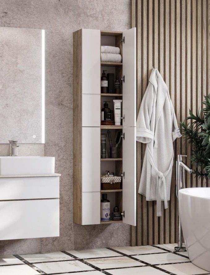 - При желании из двух шкафчиков можно составить вместительную шкаф-колонну