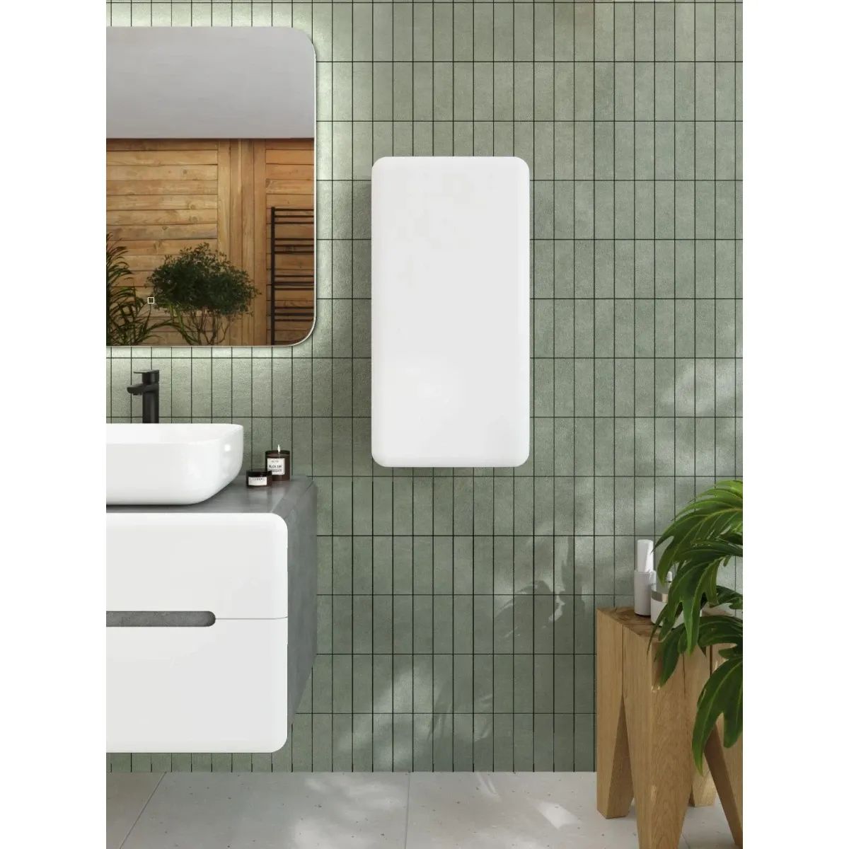 Шкаф подвесной для ванной комнаты с одной дверкой и деревянной полкой