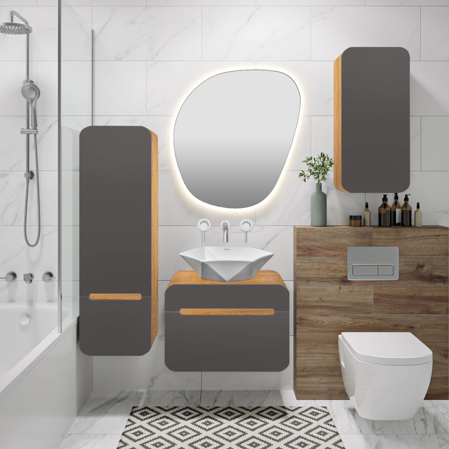 Шкаф-колонна Runo Ницца 35 дуб натуральный графит правый (00-00002129)