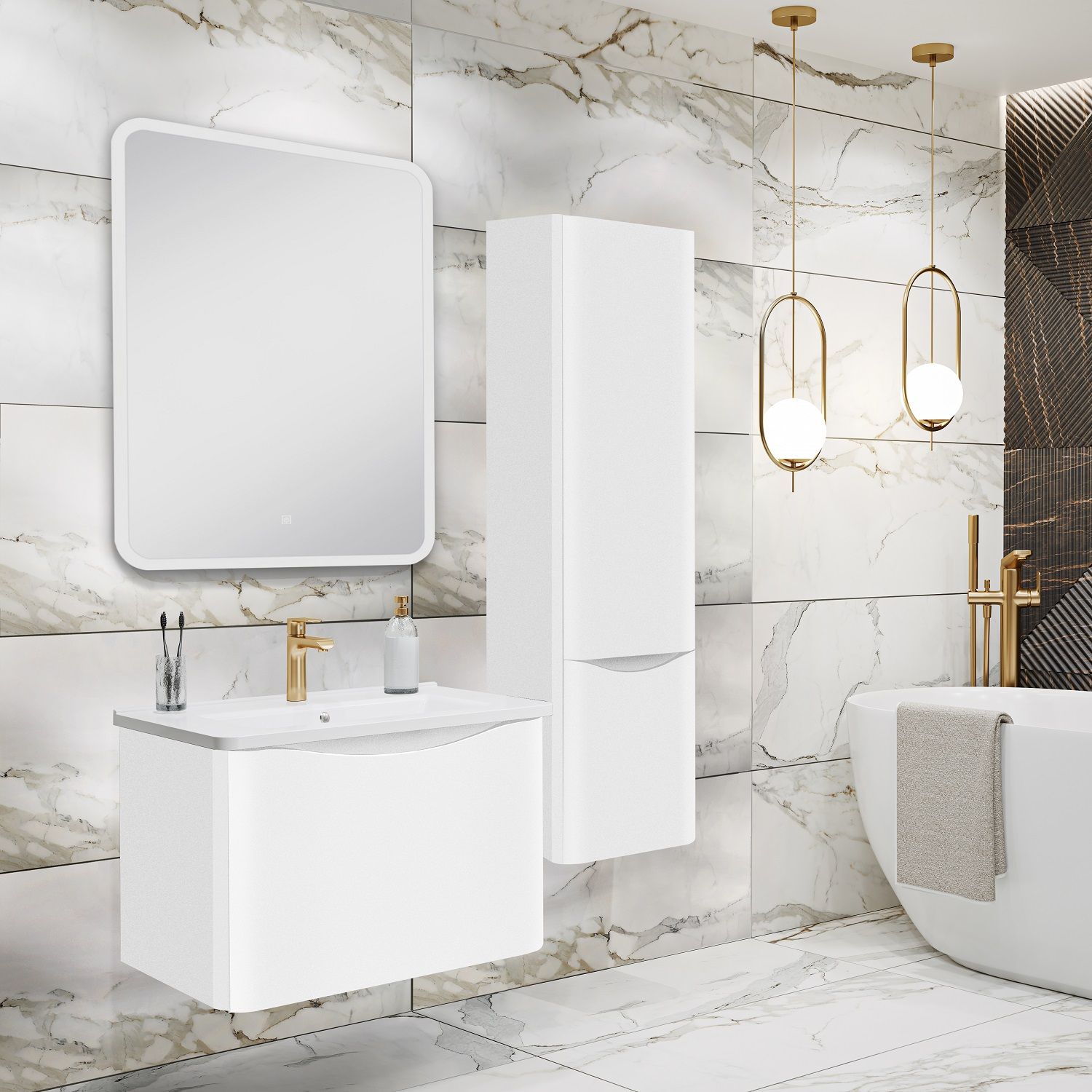 Шкаф пенал для ванной комнаты Runo Тоскана (подвесной) - выполнен в ультрасовременном дизайне в классическом белом цвете. Пенал отличается изысканным дизайном, скруглённые углы, древесная текстура фасада, врезная ручка – придают шкафу необычный и незабываемый внешний вид. Шкаф в ванную комнату оснащён двумя распашными дверцами, в верхнем отделении две встроенные полки. Каждая дверца укомплектована двумя петлями, верхняя с доводчиком, нижняя без доводчика. Мебель для ванной RUNO - красота и практичность в мелочах!