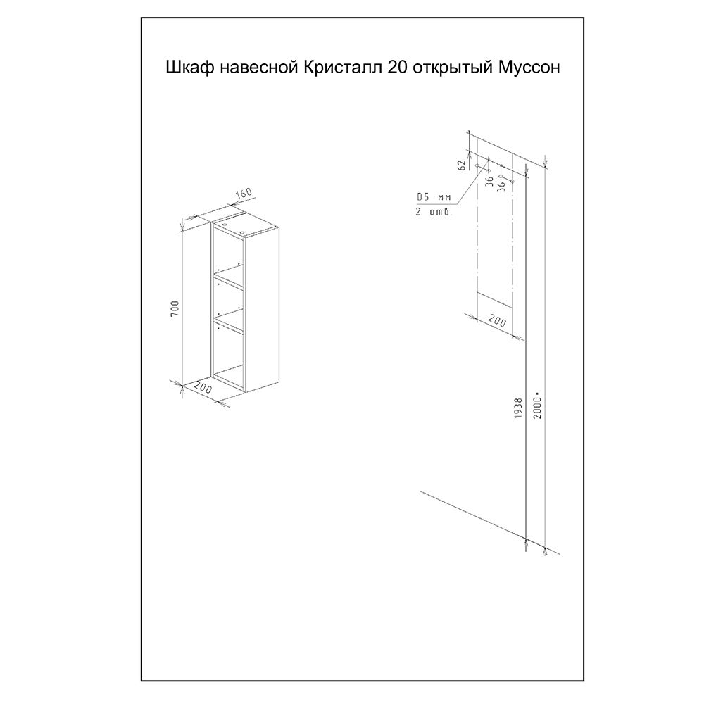 Шкаф навесной открытый Бриклаер Кристалл 4627125416033 20 см дуб бунратти купить