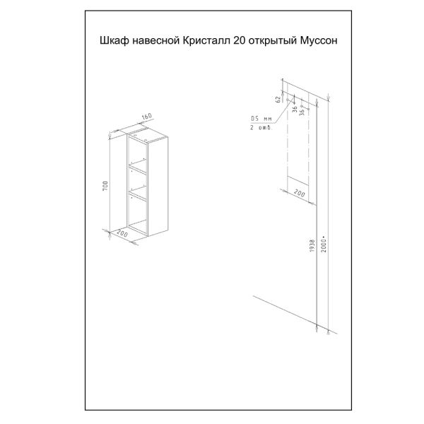 Шкаф навесной открытый Бриклаер Кристалл 4627125416033 20 см дуб бунратти