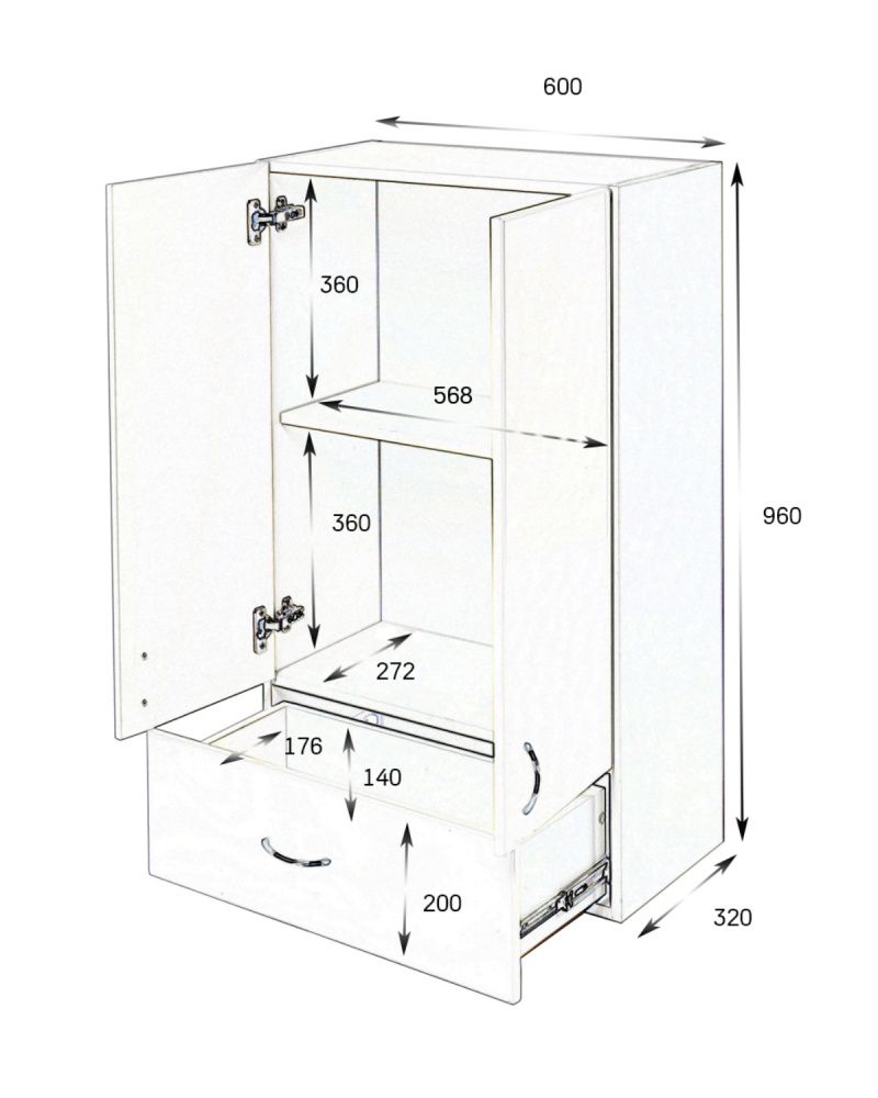 Габариты (ШхВхГл): 60х96х32 см