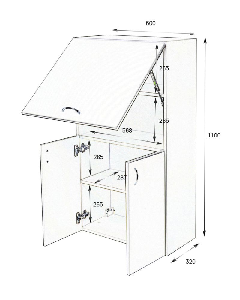 Откидная дверца верхнего отсека с механизмом плавного открывания.
