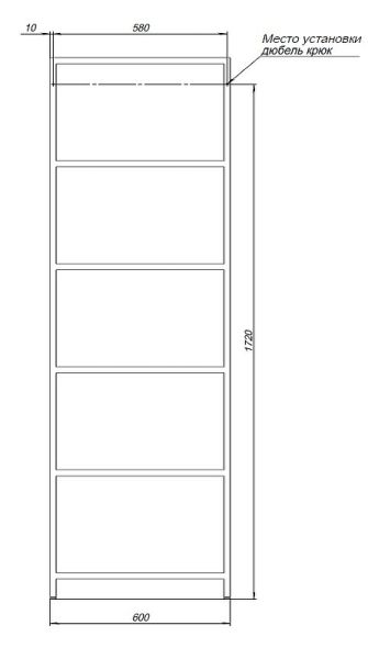 Габариты (ШхВхД): 600х1808х308 мм.