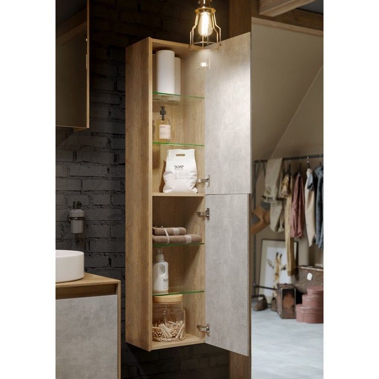 Шкаф-пенал Aqwella Mobi MOB0535DB+MOB0735BS подвесной 36.5 смПодвесной пенал 36,5 см с двумя дверьми с системой открывания «push-to-open». Цвет дуб балтийский/бетон светлый