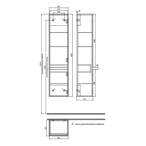 Размеры (ШхВхГ): 35х1500х297 мм.