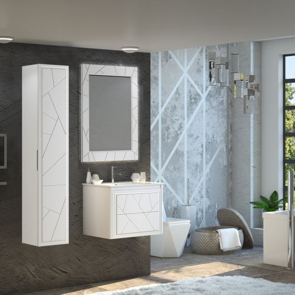 Коллекцию ЛУИДЖИ украшают сложная фрезеровка фасадов строгими линиями и декоративная подсветка по периметру зеркала, которое оснащено сенсорным выключателем. Тумбы дополняются современными ультратонкими керамическими слим-раковинами в размерах 70 см и 90 см.