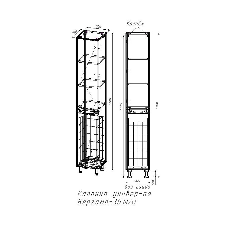 Шкаф-пенал Style Line Бергамо СС-00002330 Люкс антискрейтч Plus 30 см купить