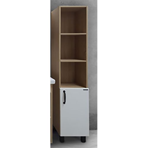 Компактные габариты позволяют грамотно организовать небольшой санузел, а пространство за распашной дверцей с механизмом плавного закрывания поможет разместить все необходимые вещи.