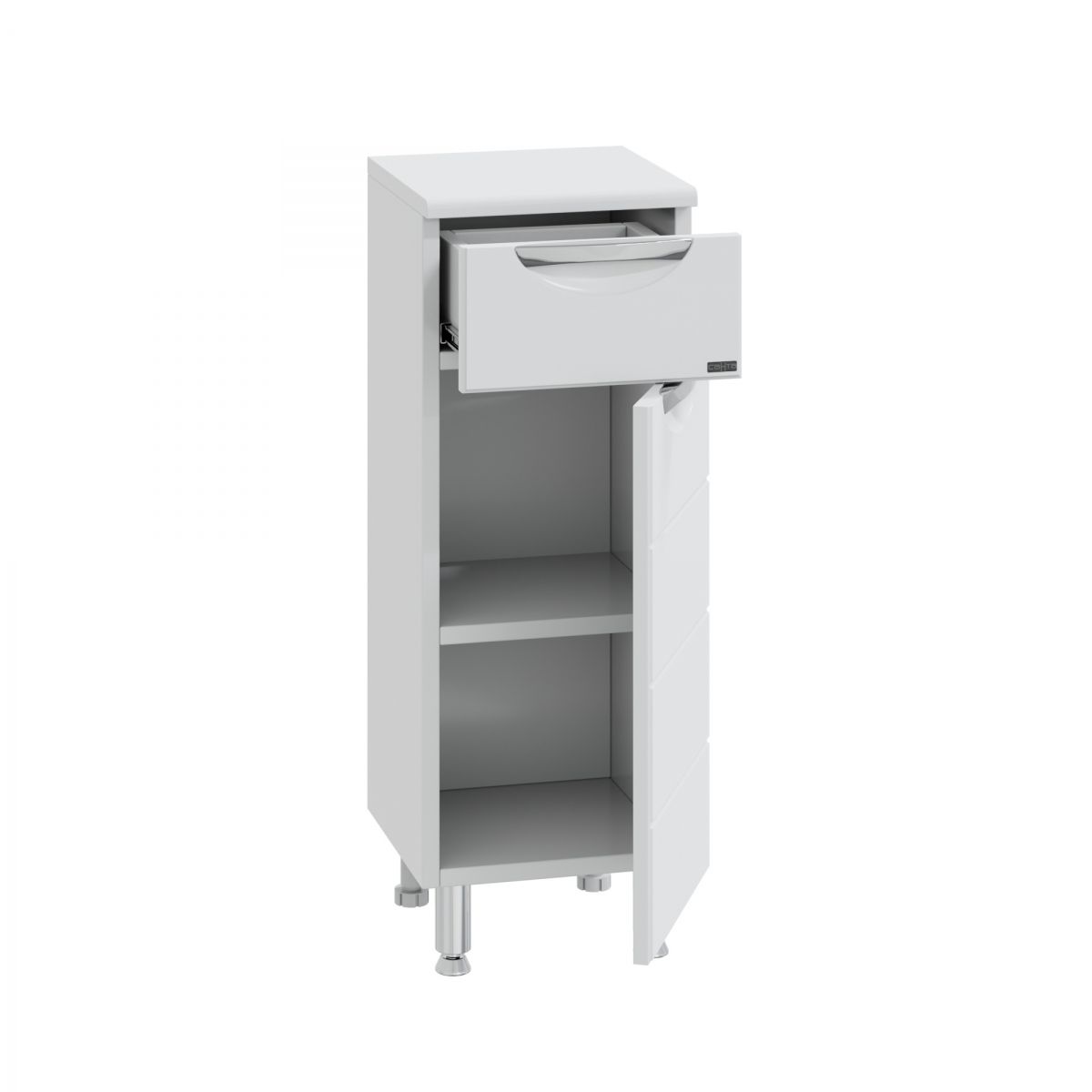 Корпус шкафа влагостойкий, выполнен из ЛДСП, фасад - из МДФ в пленке, устойчивых к механическим воздействиям, перепадам температур и высокой влажности.