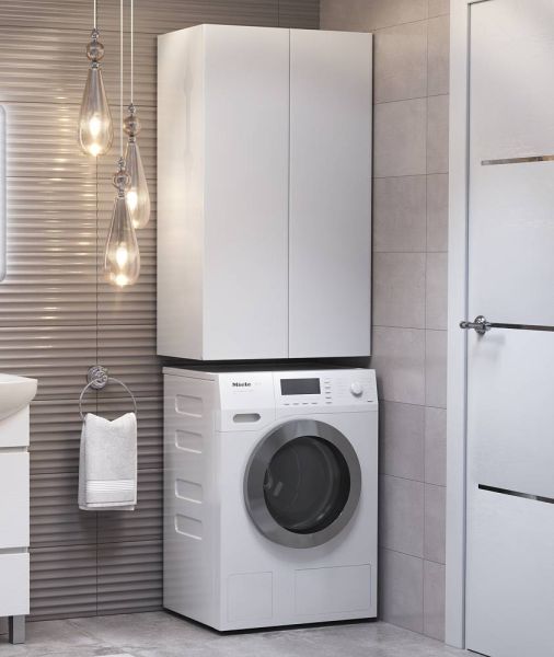 Шкафы Wing – идеальное решение, позволяющее сэкономить пространство ванной комнаты за счет размещения над стиральной машиной