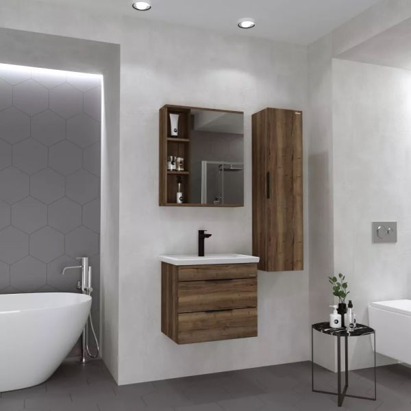 Зеркальный шкаф выполнен из влагостойкого ЛДСП, устойчивый к перепадам температур и высокой влажности.