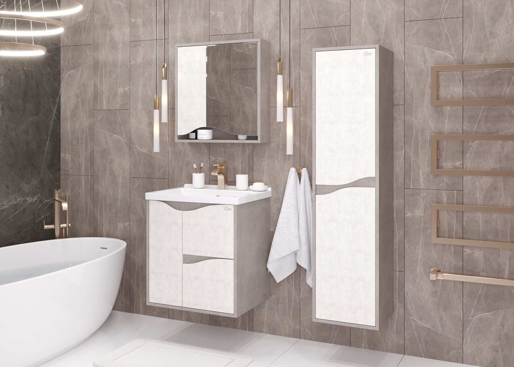 Зеркальный шкаф Onika БРЕНДОН 60 поможет создать особенную атмосферу ванной комнаты: текстуры камня и бетона гармонично дополняют друг-друга, создавая сдержанный выразительный акцент в интерьере.