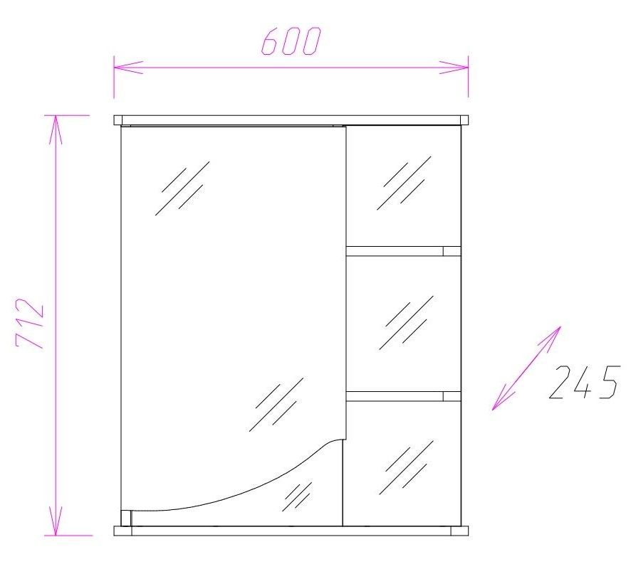 Навесной зеркальный шкаф Onika ВИОЛА 60 в левом исполнении подойдет к любому стилю ванной комнаты и будет прекрасно гармонировать с любой мебелью в том же глянцевом белом цвете.