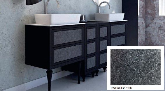 Шкафчик с тремя выдвижными ящиками, совместимый с базой под раковину, корпус черный, вариант отделки: Paisley tie