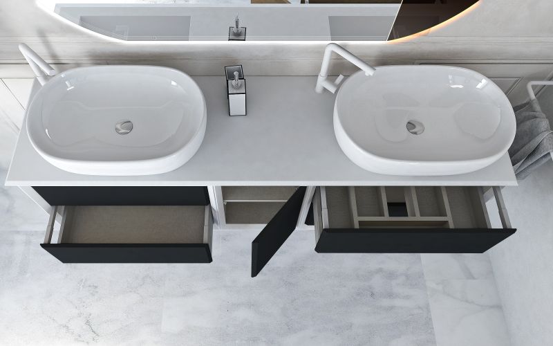 Шкафчик подвесной совместимый с базой под раковину с распашной дверцей