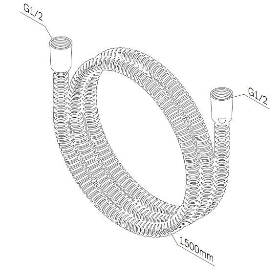 Душевой шланг от бренда АM.PM. Длина душевого шланга - 1500 мм. Материал изделия - нержавеющая сталь. Резьбовое соединение - G1/2.