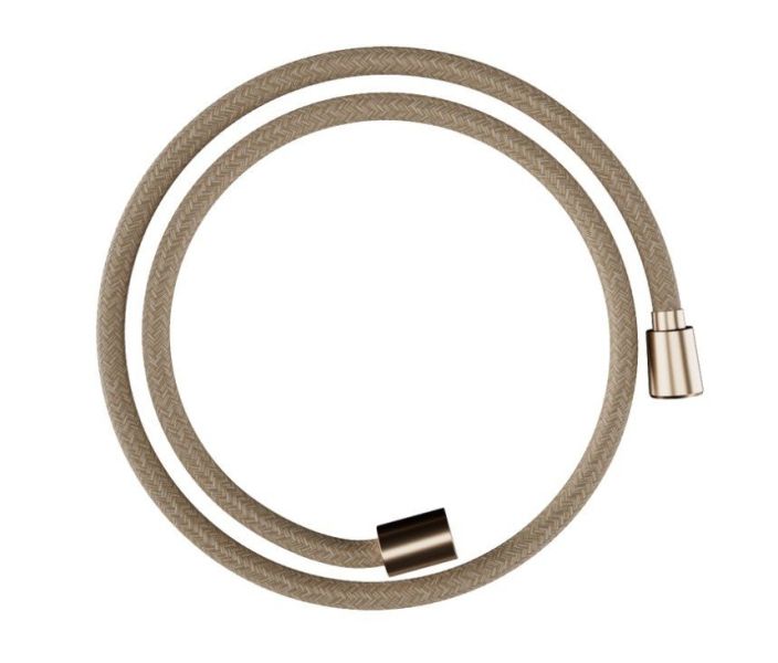 Hansgrohe Designflex 28220140 Шланг для душа 125 см (бронза шлифованная). Высококачественный текстильный шланг с оплеткой; длина душевого шланга: 1,25 м. Поворотный соединитель предотвращает запутывание шланга; защищенный от изломов; водостойкий и водоотталкивающий материал; пряжа изготовлена из переработанного ПЭТ; уникальный дизайн с разноцветными плетеными нитями. Теплый, похожий на хлопок материал приятен для кожи. можно мыть в посудомоечной машине при температуре до 60°C. гайки душевого шланга: 1 коническая гайка, 1 цилиндрическая гайка; соединительная резьба: G ½.